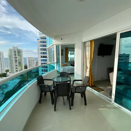 Apartamento Apto 2 Hab Vista Al Mar Piso Alto El Laguito Cartagena está situado en el barrio Laguito y ofrece un rápido acceso al Caribe Jewelry y Museo de la Esmeralda, que se encuentra a tan solo 5 minutos a pie. Los huéspedes del apartamento de 100 m² tienen acceso a una piscina y a un centro de fitness, y se encuentran a unos 5 minutos a pie del Parque Flanagan.